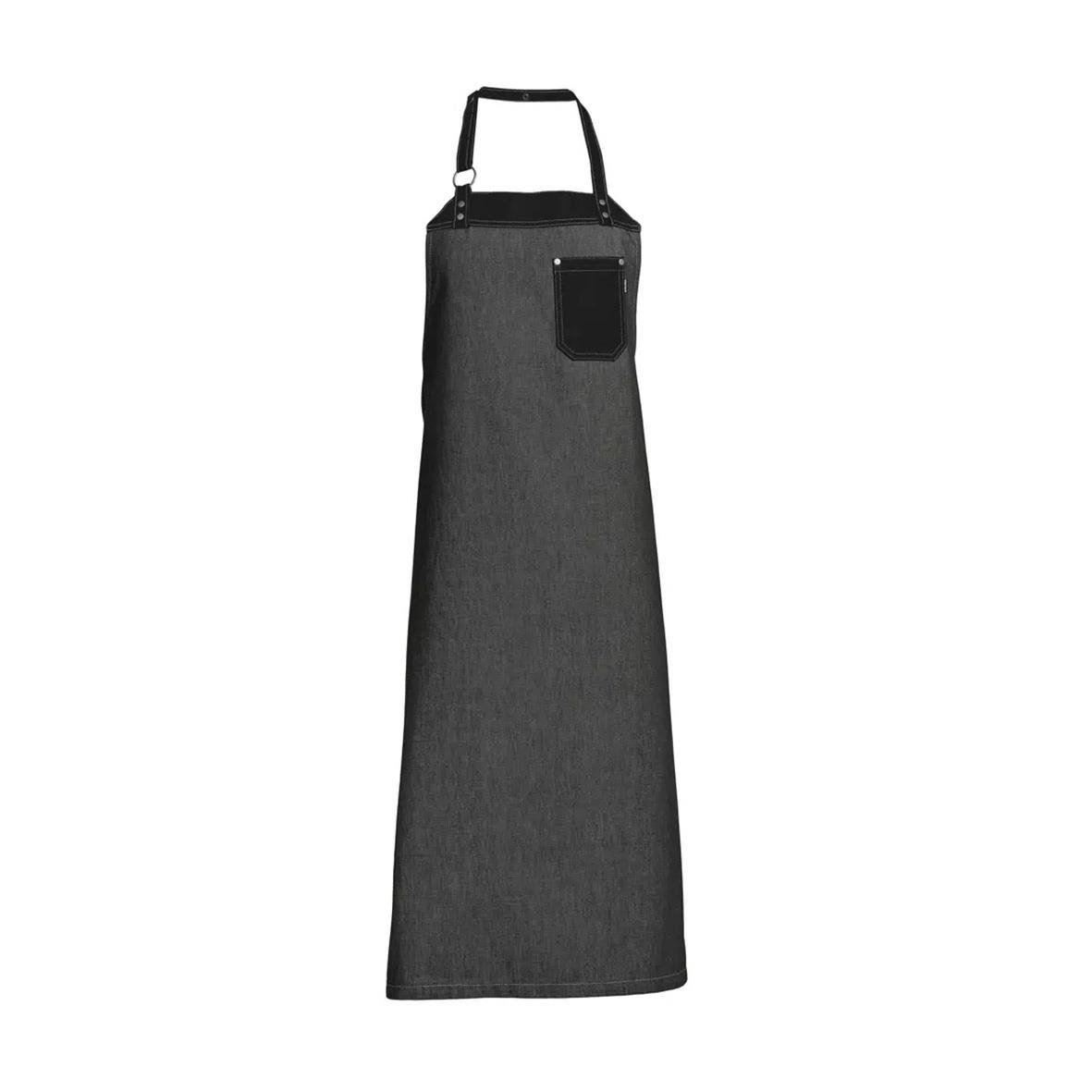 Bröstlappsförkläde i klassisk modell med nackband och rymlig ficka på höger sida.