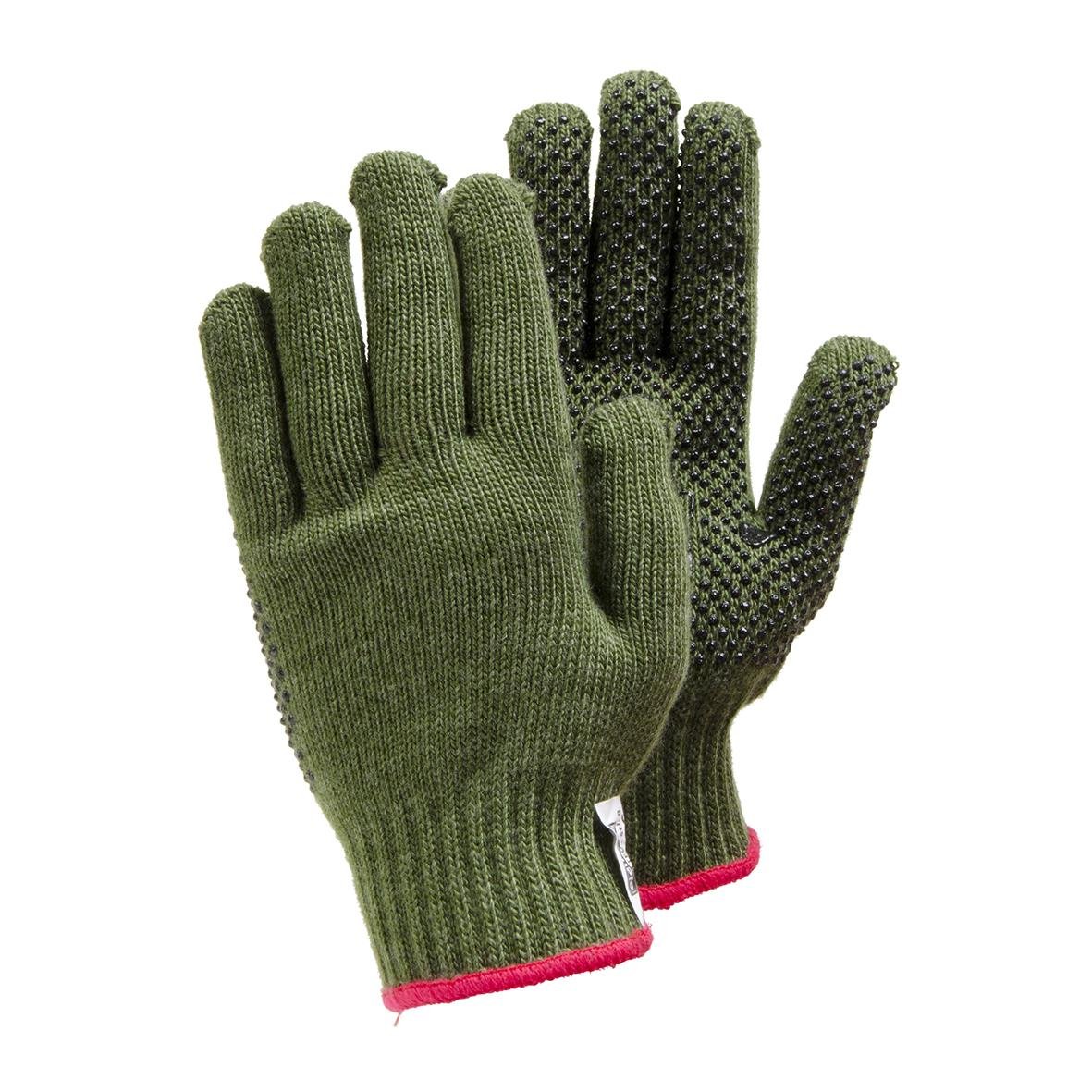 Mjuk och varm textilhandske som andas, med ftalatfria svarta vinylprickar. Tillverkad av 7 gg stickad akryl, utan sömmar. Bekväm året-runt-handske med bra grepp, lämplig för mångsidigt arbete i torra och svala utrymmen.