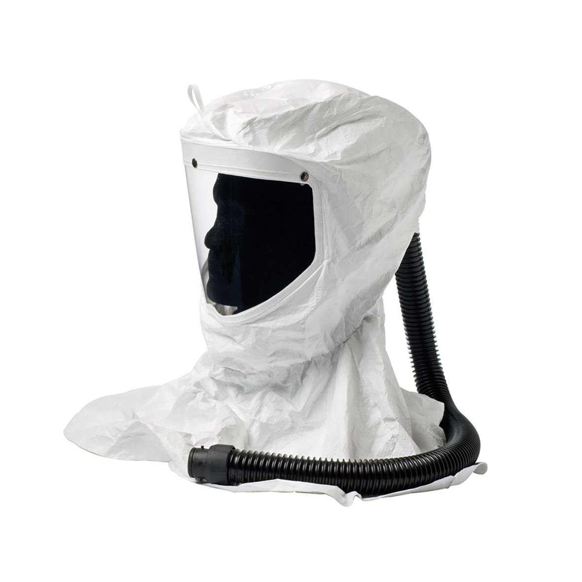 Huvan ingår tillsammans med den batteridrivna fläkten SR 500, SR 500 EX eller SR 700 i Sundströms fläktassisterade andningsskyddssystem. Huvans andningsslang ansluts till den filterförsedda fläkten. Övertrycket som bildas
