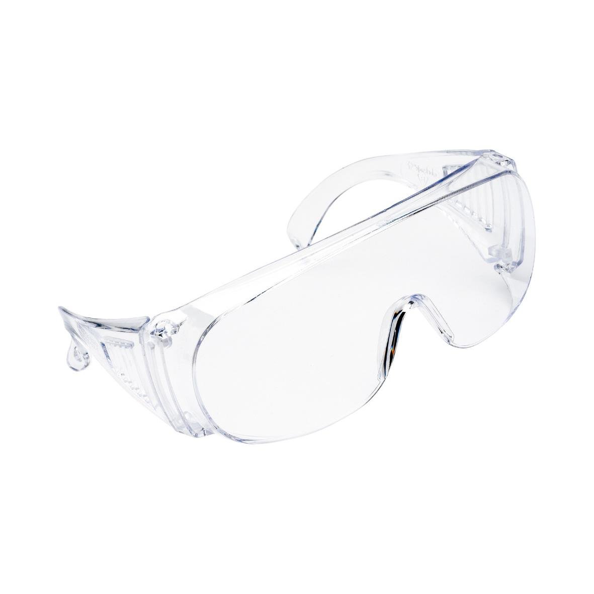 Skyddsglasögon helt i polykarbonat. Tilltagen bredd för att passa de flesta huvuden. Lämpliga som besöksglasögon.