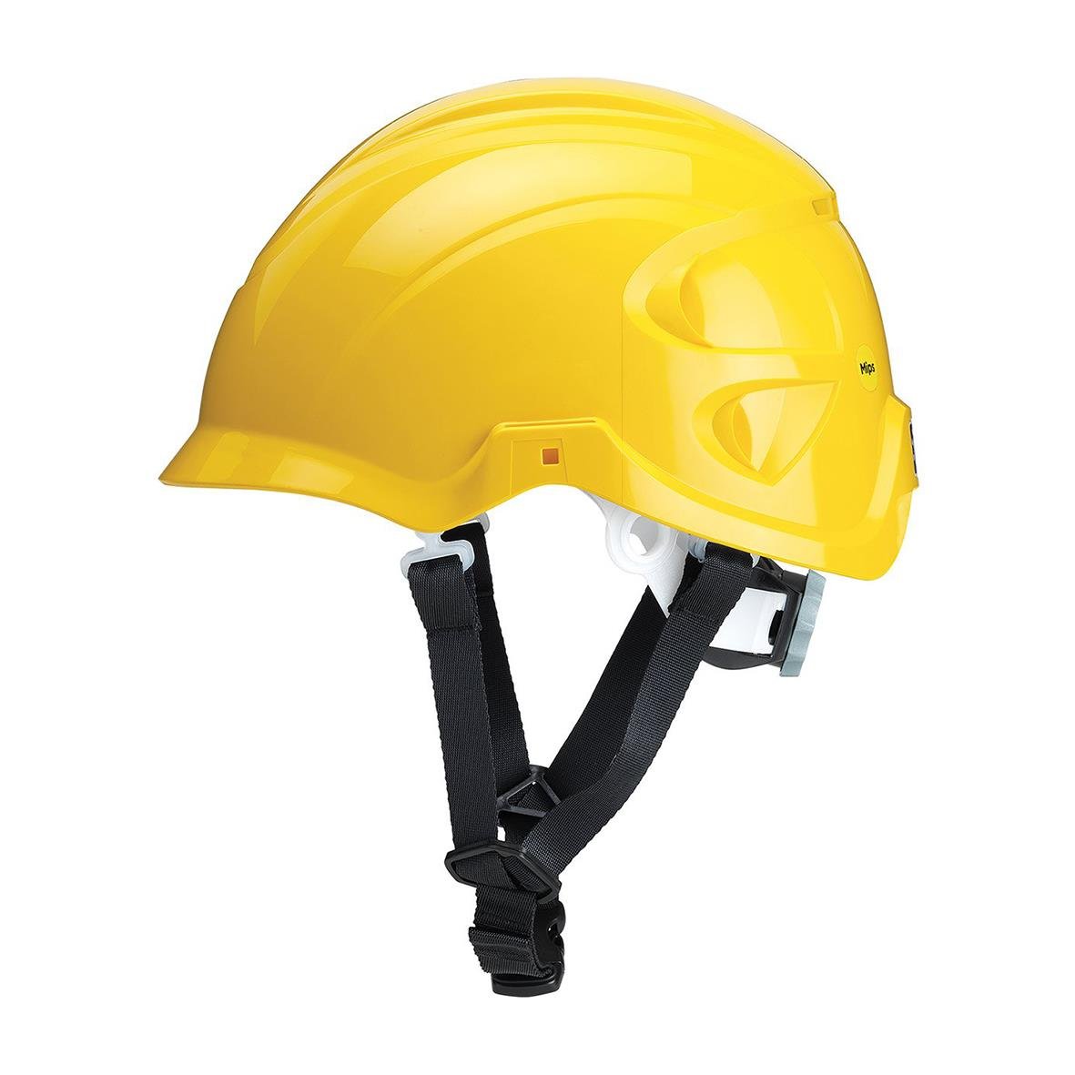 Ventilerad skyddshjälm med yttre skal i HD polypropylen och inre skal i HD polystyren. Hjällmens storlek är justerbar 52-63cm och levereras med ett 4-punkshakband i nylon med 5 justeringspunkter. Den snabbtorkande mju