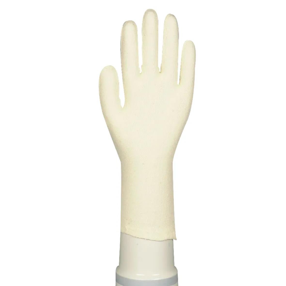 Handske i mjuk bomull/polyester, rekommenderas som en innerhandske för att absorbera svett och fukt. Skyddar vid arbete i kalla miljöer. Skyddar huden vid eksem. 12 par / fp.